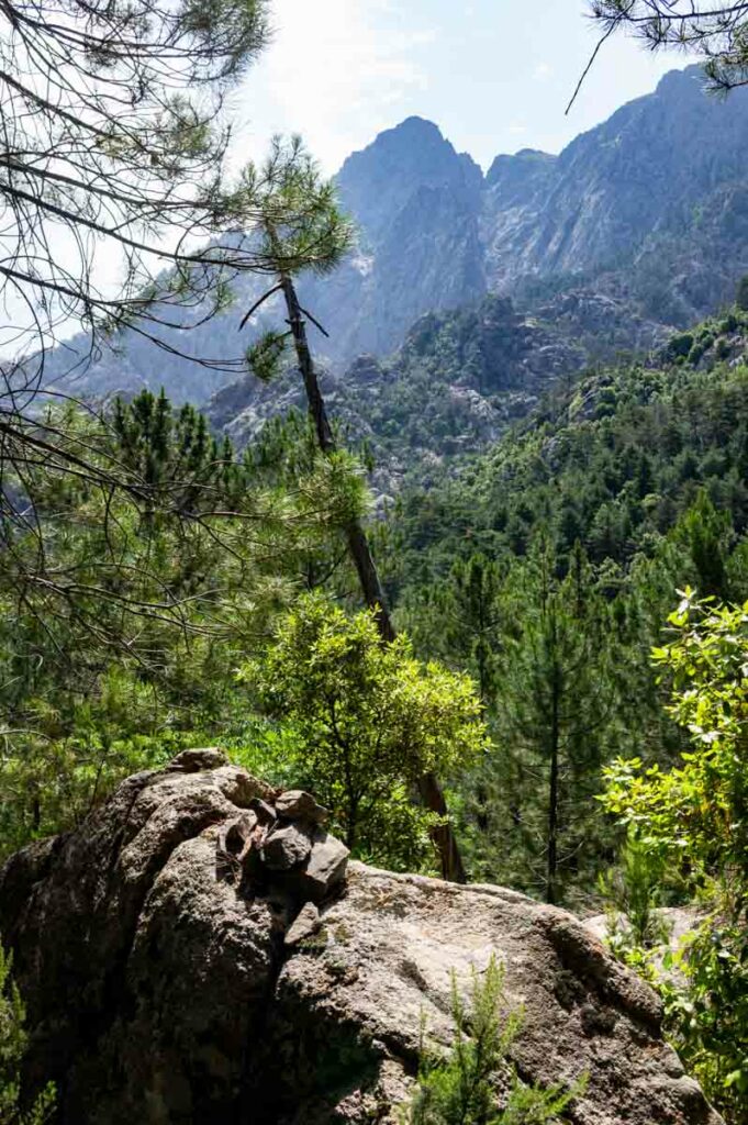 Au fur et à mesure de l’ascension, on découvre les sommets du Cirque de Bonifatu qui se dresse en arrière plan. Les randonnées en Corse sont si spectaculaires ! C’est loin d’être une randonnée en forêt comme les autres !