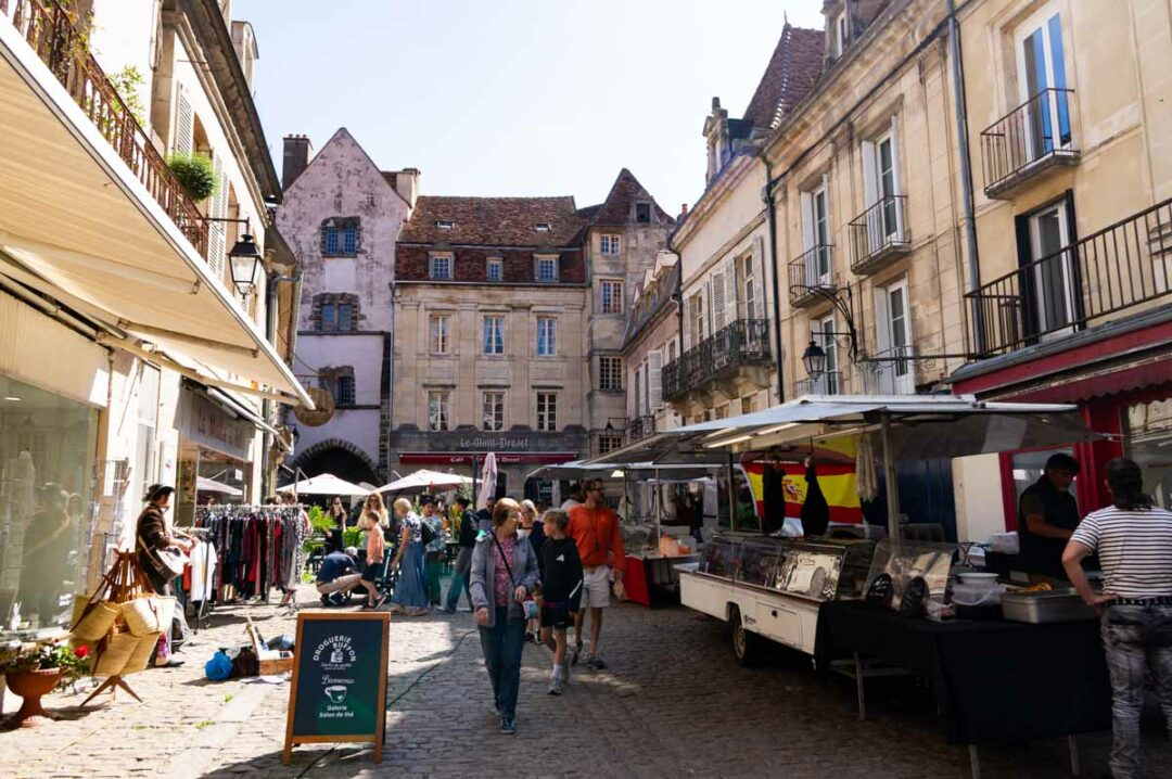 Nous nous y sommes rendus un dimanche matin, jour de marché. La ville était particulièrement animée et nous avons ainsi profité de ses très belles rues médiévales et ses jolies maisons à pan de bois.